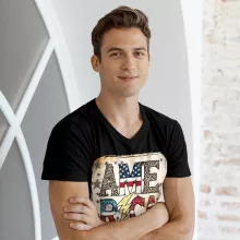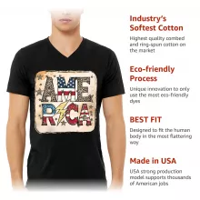 America Graphic V-Neck T-Shirt is proudly made with 7x less water than average manufacturers, in recycle-friendly facilities that also guarantee zero sweatshop conditions