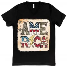 America Graphic V-Neck T-Shirt – Independence Day Basic T-Shirt – Retro Design Tee
