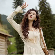 This autumn dress stands out not only because of its stunning design but also for its practical features. The sunflower embroidery adds a touch of nature-inspired elegance, while the flare sleeves bring a playful yet sophisticated flair. Made with a slight stretch, the cotton blend fabric ensures a comfortable fit without sacrificing style. Whether you’re dressing up for an autumn event or looking for a stylish yet casual everyday outfit, this dress offers the perfect blend of elegance and comfort.