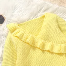 - Delicate ruffle details on the bonnet and sweater for a sweet, fashionable look
