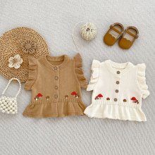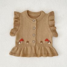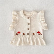Autumn Baby Knitted Vest with Mushroom Embroidery