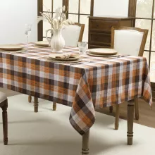 Infuse your dining space with the cozy essence of fall with this Autumn Plaid Rectangular Tablecloth. Designed in a classic square plaid pattern with rich shades of brown and orange, it captures the warmth and beauty of the season. Perfect for everyday meals, festive gatherings, and themed celebrations, this tablecloth sets the tone for a welcoming, harvest-inspired atmosphere.