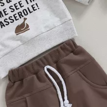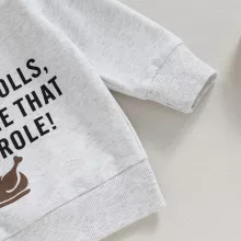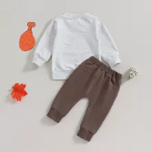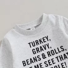 Baby Boy Thanksgiving Outfits. This charming set includes a classic long-sleeve sweatshirt featuring a playful turkey print and matching pants. Perfect for family gatherings, cozy evenings at home, or a fun outing, this outfit combines comfort and style, ensuring your toddler looks adorable while feeling cozy all season long.