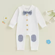 Dress your little gentleman in timeless charm with this Baby Boys Long Sleeve Plaid Jumpsuit with Bow Tie. Designed for comfort, style, and easy dressing, this adorable romper set is perfect for family gatherings, holidays, photoshoots, or just showing off your baby’s fashionable side. The classic plaid pattern and matching bow tie create a smart, dapper look that’s simply irresistible.