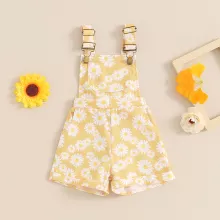Brighten up your baby girl’s wardrobe with this charming daisy print romper, designed for carefree summer days and picture-perfect moments. This sleeveless overall-style jumpsuit brings together comfort, cuteness, and playful fashion in one irresistible outfit. Whether she’s crawling, walking, or simply soaking up attention, this romper makes sure she does it in style.