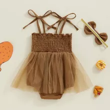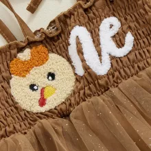This outfit isn’t just about looks — it’s about celebrating togetherness. The turkey embroidery adds a playful seasonal touch, while the soft, high-quality fabric ensures your baby stays comfortable through every hug, photo, and giggle. Whether it’s her first Thanksgiving or another special milestone, this romper dress and bow set will make her shine with festive charm.