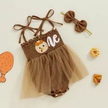 Make your little one the star of your holiday celebration with this charming Baby Girl Thanksgiving Outfit. Designed for comfort and cuteness, this 2-piece set includes a beautifully embroidered turkey romper dress with sweet tie shoulders, paired with a matching bow headband. Perfect for family gatherings, festive photos, or cozy holiday dinners, it’s the ideal outfit to capture those precious Thanksgiving memories.