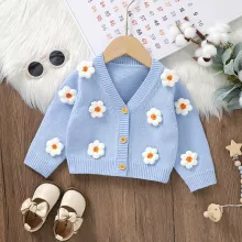 - Charming 3D Floral Design: The cute 3D flowers add a touch of whimsy to the cardigan, making it a standout piece for your baby’s wardrobe.