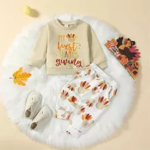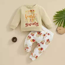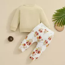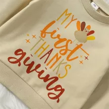 Made from a soft, breathable blend of cotton and polyester, this outfit keeps your infant snug and happy all day. The sweatshirt features a crew neck and long sleeves—ideal for crisp autumn weather—while the pants offer a flexible elastic waistband for easy dressing and ultimate comfort. Whether your little turkey is playing, posing for photos, or joining family gatherings, this outfit ensures they look adorable and feel cozy.