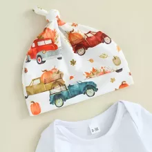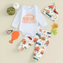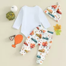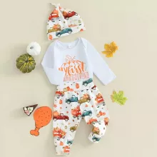 - Festive Design: Adorable letter print romper and pumpkin car print pants celebrate the Thanksgiving spirit.
