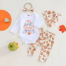 - Complete Festive Set: Includes a romper, pumpkin pants, hat, and headband—everything you need for a picture-perfect Thanksgiving outfit.
