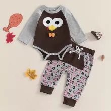 This Thanksgiving outfit is best used during festive fall celebrations — especially Thanksgiving Day! The premium materials and flexible design let your little one move freely, crawl, or nap in comfort. The charming turkey motif makes it an instant holiday favorite that you’ll treasure in family photos for years to come.