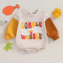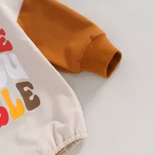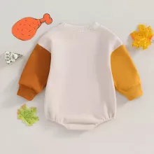 This charming romper keeps your baby warm during cooler days. Its long sleeves and soft beige color make it easy to pair with leggings, socks, or baby booties for a complete festive outfit. Whether it’s a family photo shoot, Thanksgiving dinner, or everyday lounging, this bodysuit adds a touch of playful holiday spirit to your baby’s wardrobe.