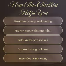 Save hours in the kitchen and enjoy healthy, ready-to-eat meals all week with Batch Cooking Made Easy. This digital checklist is your practical companion for streamlining meal prep, cutting down on daily stress, and making sure every ingredient in your kitchen serves a purpose. Whether you’re cooking for one, a family, or planning for a busy workweek, this guide gives you a clear batch cooking step-by-step process to follow, so you can enjoy more time doing what you love.