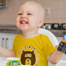Be Strong And Courageous Baby Onesie is proudly made with 7x less water than average manufacturers,