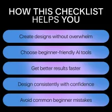 Unlike generic AI design guides, this checklist is built specifically for beginners. It focuses on tiny wins, smart constraints, and real-world use—not overwhelming options. You don’t need design experience, fancy tools, or endless tutorials. Just open the checklist and follow along.
