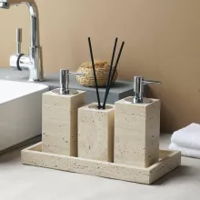 Designed to meet all your bathroom needs, this set is perfect for daily use while adding a touch of luxury. Whether you’re looking to organize your vanity or add a few elegant touches to your bathroom, this set is the ideal solution. The travertine material offers a timeless aesthetic that lasts for years, making it a must-have for those who appreciate classic style with a modern twist.