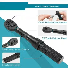 This complete kit includes everything needed for confident repairs and upgrades. The wrench features a durable alloy-steel head and a comfortable non-slip handle for better grip and stability. The clear Nm scale makes it easy to set your exact torque, and the distinct click lets you know the pre-set torque has been reached. With its wide selection of hex and Torx bits, extension bar, and sockets, you’ll be ready for almost any adjustment at home or on the go.