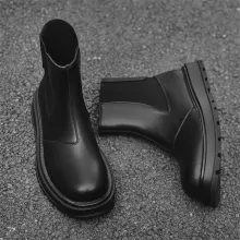 These Black Luxury Leather Chelsea Ankle Boots are designed to impress with their sleek silhouette and versatile style. The combination of split leather and a low heel makes them a great choice for any occasion, whether you’re dressing up for a special event or keeping it casual for a day out. The round toe and comfortable PU insole ensure you stay at ease all day long.