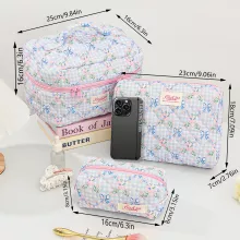 Made from durable polyester, this makeup bag is built to handle your daily routine or spontaneous travel adventures. The quilted design not only adds a plush, stylish feel but also offers a gentle protective layer for your cosmetics. A smooth, secure zipper ensures your items stay safely tucked away, while the compact yet roomy interior holds all your must-haves—brushes, lipsticks, compacts, and more.