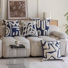 Transform your living space with the cozy charm of this Bohemian Tufted Geometric Throw Pillow Cover. Designed with a modern navy fringe and textured tufted pattern, this 18×18 inch cushion cover adds instant character to any room. Whether on your sofa, bed, or bay window nook, it creates a welcoming and stylish vibe that feels both casual and refined.