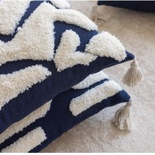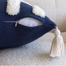 Made from a blend of breathable cotton and durable linen, this pillow cover combines softness with long-lasting quality. Its handwoven-inspired knit design offers a tactile experience, while the navy fringe gives it a unique boho touch. The hidden zipper closure makes it easy to slip over your favorite pillow insert for a polished look.