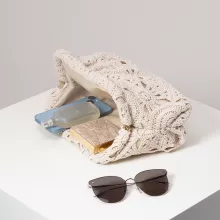 Crafted from soft yet structured polyester, this kiss-lock bag features intricate woven patterns and hollowed details that lend a breezy, handmade vibe. The interior is fully lined, offering a clean and protective space for your essentials. The clasp-style closure brings a nostalgic, vintage-inspired finish while keeping your belongings secure. With its compact size and textured design, this bag transitions seamlessly from day to night.