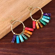 Boho 7 Chakra Imperial Jasper Dangle Earrings