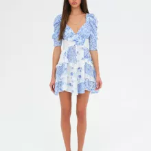 Boho Blue Floral Lace Mini Dress – Backless V-Neck A-Line Summer Style