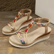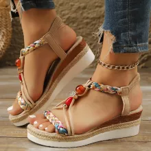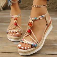 Make every step a statement with these stunning Bohemian Style Espadrille Wedge Sandals. Designed for women who love a blend of comfort and charm, these platform sandals elevate your summer wardrobe with their vibrant beaded decor and chic ankle strap design. Perfect for sunny days and warm evenings, they’re the ultimate go-to shoes for vacations, casual outings, and everything in between.