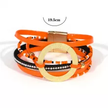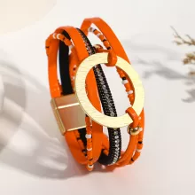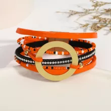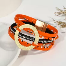 Crafted with care and creativity, this bracelet is made from premium PU leather and durable alloy. The design showcases multiple layers of braided leather, seed beads, and crystal chains, finished with a striking gold circle and leaf charm that catches the eye. Its bohemian-inspired look gives you an instant style boost, whether you’re dressing up or keeping it casual.