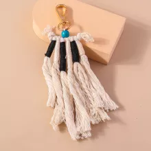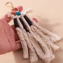 Boho Woven Tassel Keychain – Handmade Cotton Rope Bag Pendant for Women & Men