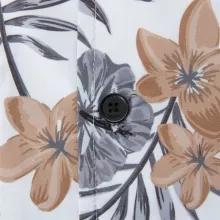 The Boss Men’s Light Blue Floral Shirt stands out for its ability to blend sophistication with casual charm. The lightweight polyester fabric ensures comfort throughout the day, while the subtle floral pattern strikes the perfect balance between trendy and timeless. Its thoughtful details, like the V-neckline and short sleeves, make it a comfortable and stylish option for layering or wearing solo.