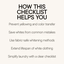 Unlike generic laundry advice, this checklist focuses solely on whites and presents everything in a concise, actionable format. No fluff, no overwhelming instructions, just practical steps you can follow every single time.