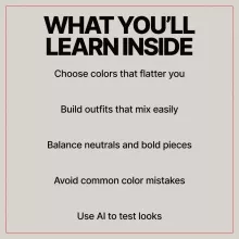 Unlike generic style guides, this resource blends timeless color theory with real-life examples and AI-powered experimentation. It’s practical, approachable, and designed for everyday wear, not runway looks.