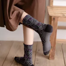Made from a blend of breathable cotton, stretch-friendly polyester, and soft spandex, these mid-calf socks offer just the right balance of warmth, flexibility, and all-day comfort. The knitted construction provides gentle support without feeling bulky, making them perfect for fall and winter wear. The middle tube height ensures your ankles stay warm without overheating, and the vintage tones and patterns bring a subtle flair to any outfit.
