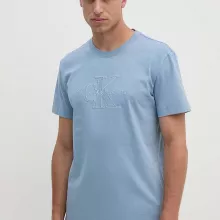 Elevate your casual wear with the Calvin Klein Jeans Men’s Light Blue Cotton T-Shirt, a perfect choice for adding sophistication to your everyday look. Designed for the modern man, this T-shirt combines simplicity with premium quality, making it a versatile addition to your fall and winter wardrobe. The soft light blue hue offers a fresh take on classic style, while the round neckline and short sleeves provide a relaxed, comfortable fit.