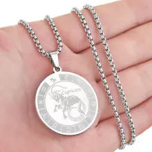 The round pendant features the iconic Capricorn constellation, perfectly engraved to highlight your star sign in sleek metallic detail. Paired with a smooth snake chain, this necklace blends a punk-inspired vibe with elegant minimalism. Its unisex design ensures it’s the perfect fit for anyone looking to express their star-born identity with pride and power.