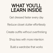 This digital resource walks you through the full process of creating and maintaining a capsule wardrobe, using clear explanations and real-life examples. You’ll learn: