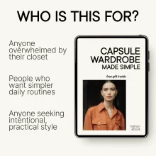 Unlike generic fashion checklists, Capsule Wardrobe Made Simple focuses on practical living. With a real-life capsule example, honest discussions about mistakes, and actionable AI prompts, this guide goes beyond theory and helps you build a system you can actually maintain.