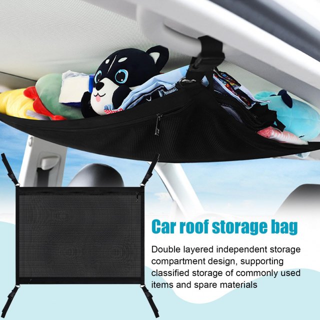Turn wasted roof space into smart storage with this double-layer car ceiling cargo net. Designed for road trips, camping, or everyday driving, this overhead organizer keeps your essentials safe, secure, and within easy reach. Crafted from high-density, wear-resistant polyester, it offers reliable durability and a strong load-bearing capacity while keeping your items neatly in place.