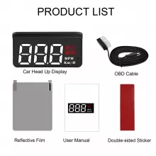 Our HUD stands out because it combines safety, convenience, and style. The high-quality ABS and PC materials ensure durability, while its compact size (3.39″ x 1.46″ x 0.63″) makes it a seamless addition to your vehicle. Whether you’re embarking on a long road trip or your daily commute, this device helps you stay alert and informed, improving overall safety and driving confidence. The included reflective film enhances clarity, even in bright daylight, and the double-sided sticker ensures a secure, hassle-free installation.