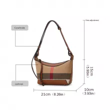 This bag is not just a fashion statement but a practical piece of your everyday wardrobe. Made with precision and care, the checkered plaid pattern and caramel color are versatile enough to match a variety of outfits, whether you’re dressing up for a special occasion or down for a casual outing. The combination of canvas and leather makes it both stylish and durable, meaning it’s built to last. The spacious interior and practical design give you plenty of room to carry all your essentials with ease, while the secure zipper closure keeps everything safe and organized. Whether you prefer to carry it on your shoulder or as a crossbody, this bag gives you the flexibility you need for any situation. Add this must-have accessory to your collection today and enjoy the perfect blend of style and functionality.