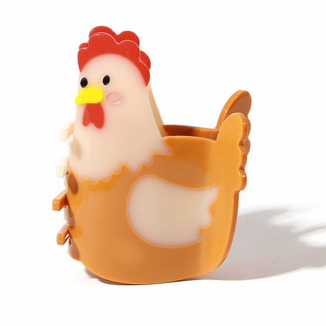 This hair clip is special because it combines whimsical character design with quality craftsmanship. The cute cartoon chicken features delightful details from its cheerful beak to its perky comb, creating a personality-filled accessory that stands out from ordinary hair clips. What makes it truly special is the pieced acrylic construction that gives dimension and depth to the design, making the chicken appear almost three-dimensional in your hair. The high-quality acetate and acrylic materials ensure the vibrant colors stay bright, while the strong grabber mechanism provides a secure hold. It’s this combination of creative design, quality materials, and reliable function that makes it exceptional.