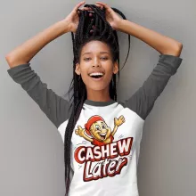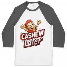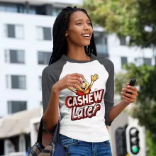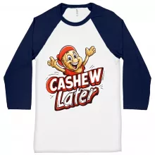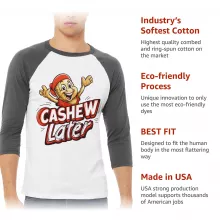 Cashew Later Baseball T-Shirt is proudly made with 7x less water than average manufacturers, in recycle-friendly facilities that also guarantee zero sweatshop conditions. Snack Lover 3/4 Sleeve is designed and printed in California.