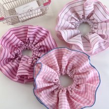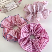 Enhance Your Look with Our Pink Stripes Ruffles Hair Scrunchies