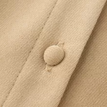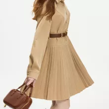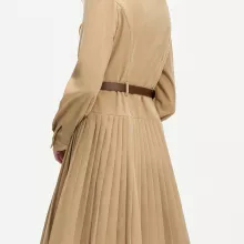 The slightly stretchy material provides just enough flexibility for a comfortable fit that moves with you throughout the day. With its empire waistline and pleated design, it creates a flattering silhouette that looks great on every body type. The neutral khaki color ensures that it pairs beautifully with a variety of accessories and footwear, making it a versatile addition to your wardrobe.