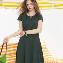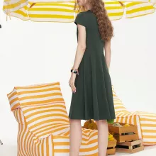 This dress features a timeless O-neckline, regular short sleeves, and a flattering pleated silhouette that naturally enhances your shape. The fabric has a slight stretch, making it easy to move through your day without sacrificing elegance. Its solid color pattern makes it versatile enough to pair with statement accessories or keep things minimal for a refined, modern appearance. Ideal for middle-aged women who appreciate comfort blended with classy design, this is a wardrobe essential that speaks volumes in simplicity.