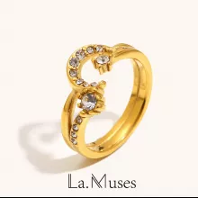 Shine brightly and express your unique style with our Zircon Inlaid Moon Shaped Stainless Steel Ring. Designed for the modern woman, this stunning ring combines luxurious materials with a fashionable design that makes it perfect for everyday wear or special occasions. Whether you’re dressing up for a party or simply want to add a little sparkle to your daily outfit, this ring is the perfect accessory.