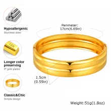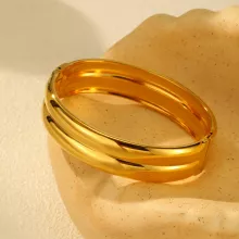 Step into effortless elegance with this eye-catching chunky gold plated cuff bracelet. Designed for the modern woman who loves standout accessories, this layered, wide bangle is the ultimate blend of fashion-forward style and everyday comfort. Its polished, high-shine finish and sturdy hinged design make it as easy to wear as it is beautiful to behold. Whether you’re dressing up a casual outfit or adding the final touch to an evening look, this bracelet brings a bold gold statement to your wrist.